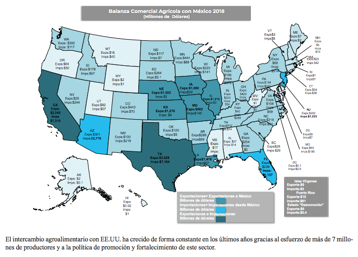 En lo que respecta a EE.UU., México se ha convertido en el principal proveedor de productos agroalimentarios, representando el 17.6% de sus importaciones, por encima de Canadá y la Unión Europea.