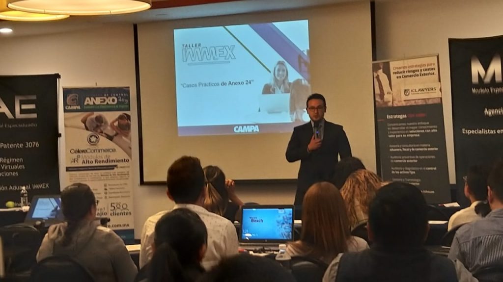 El Lic. Cuauhtli Calderón, Director General de CAMPA comenta “Este curso fue creado con la intención de brindar una asesoría puntual y efectiva a todos los participantes desde el punto de vista de 3 de las entidades fundamentales para las empresas IMMEX y Certificadas en materia de IVA e IEPS en México que son el agente aduanal, el consultor en comercio exterior y el desarrollador del software y especialista en el Anexo 24.