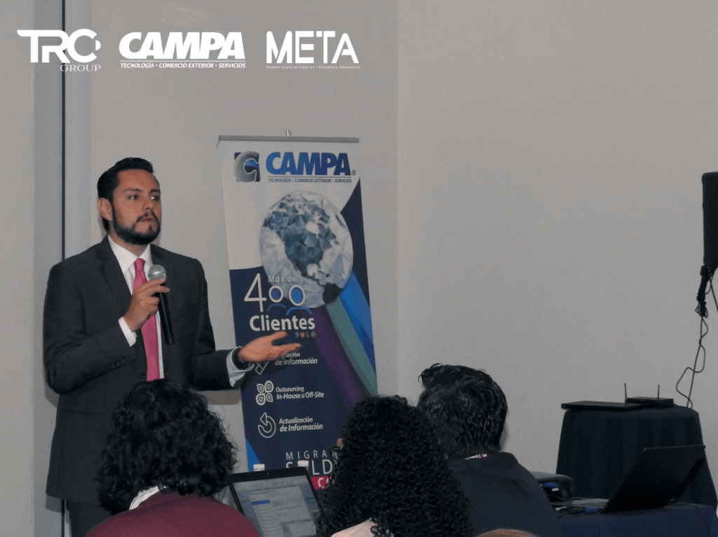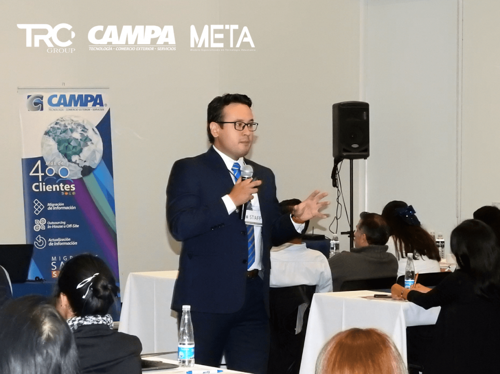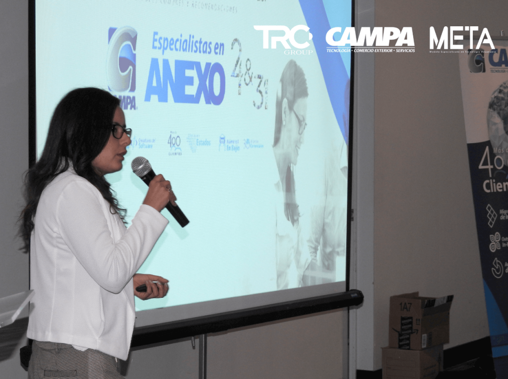 El evento fue organizado por nuestra alianza comercial META “Modelo Especializado en Tecnología Aduanera”, los temas que conformaron el temario de la conferencia fueron: Errores comunes y mejores practicas para el cumplimiento del Anexo 24, impartido por LCNI. Karla Martínez, Herramientas de Administración del Expediente Electrónico / Digital, por LCI. Fred Castro, para concluir la conferencia, el LIC Luis Sahagún de TRC Group, expuso el tema “Aseguramiento legal de Activos fijos”.